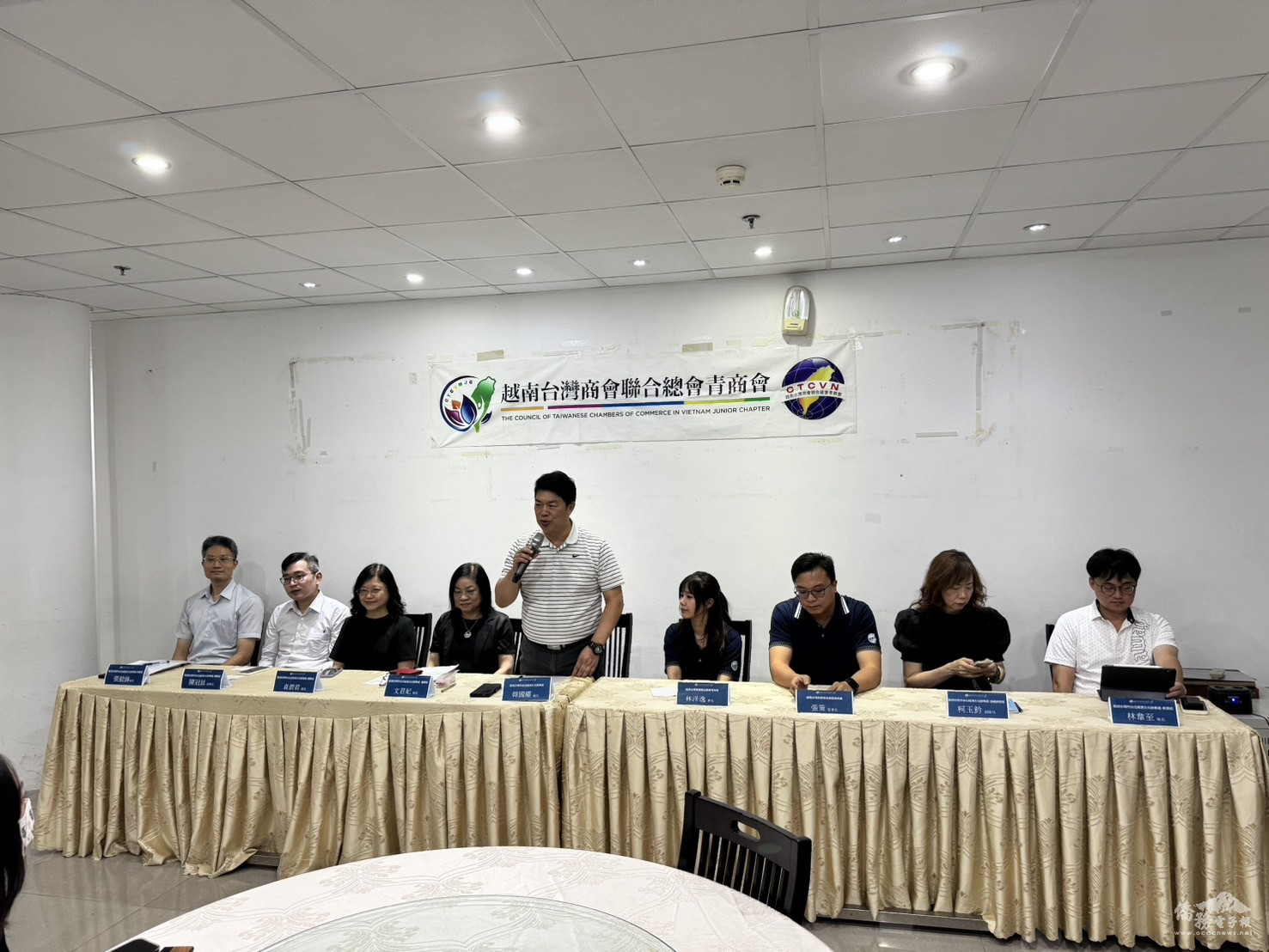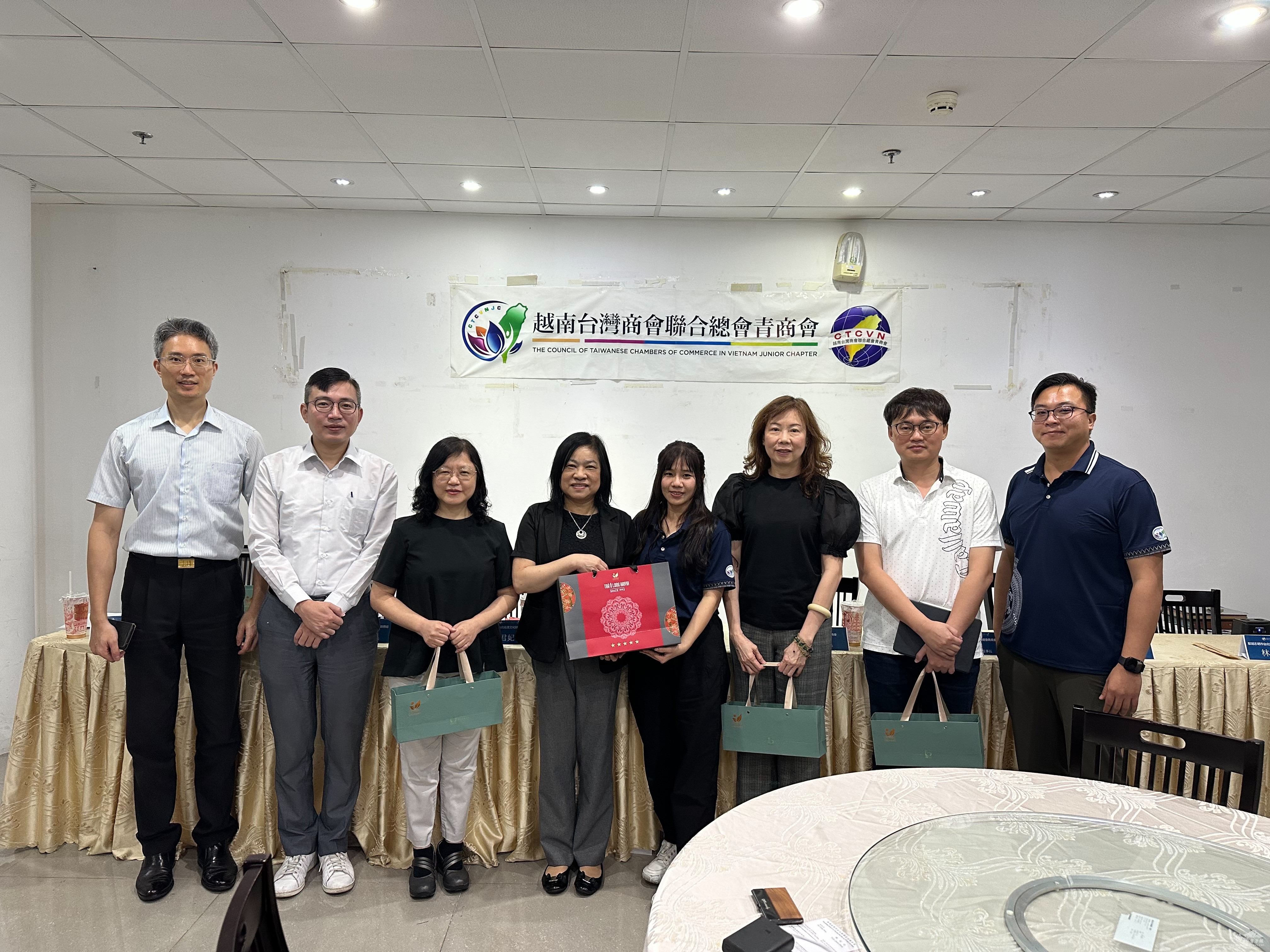 On August 24, the Council of Taiwanese Chambers of Commerce in Vietnam Junior Chapter held a roundtable titled "Meet the Director-General" at the Taipei Economic and Cultural Office (TECO) in Ho Chi Minh City. The event, aimed at facilitating a face-to-face exchange with young entrepreneurs, was chaired by Chapter President Yang-yi Lin and joined by TECO Director-General Kuo-yao Han, Director Chun-fei Wen of the Overseas Community Affairs Section, Secretary Pei-yu Chen, Director Wei-chih Lin of the Education Section, Director Pi-chun Yuan and Deputy Director Kuan-ting Chen of the Consular Affairs Section, Deputy Director Yu-chien Ko of the Emergency Assistance Section, and Economic Secretary Yi-feng Chang, along with other TECO officials.