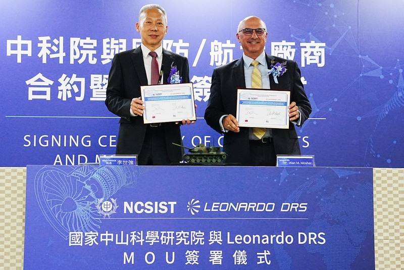 NCSIST President Li Shih-chiang (李世強) signed an MOU with Leonardo DRS Vice President Alan M. Mosher on fire-control, gun-control and sighting systems for the Army's M60A3 tanks.