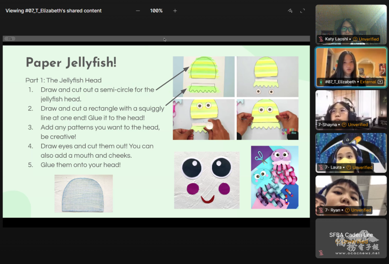 The Director of the Counseling Office, Anna Yao, broke down the participants who joined the session from Kang Ning Elementary School. "Forty Kang Ning students were spread out between fourteen meeting rooms. Teachers, administrators, the Principal, directors, bilingual art and craft teachers, tutors, special education teachers, and bilingual physical education teachers all participated in the event, learning alongside their students."