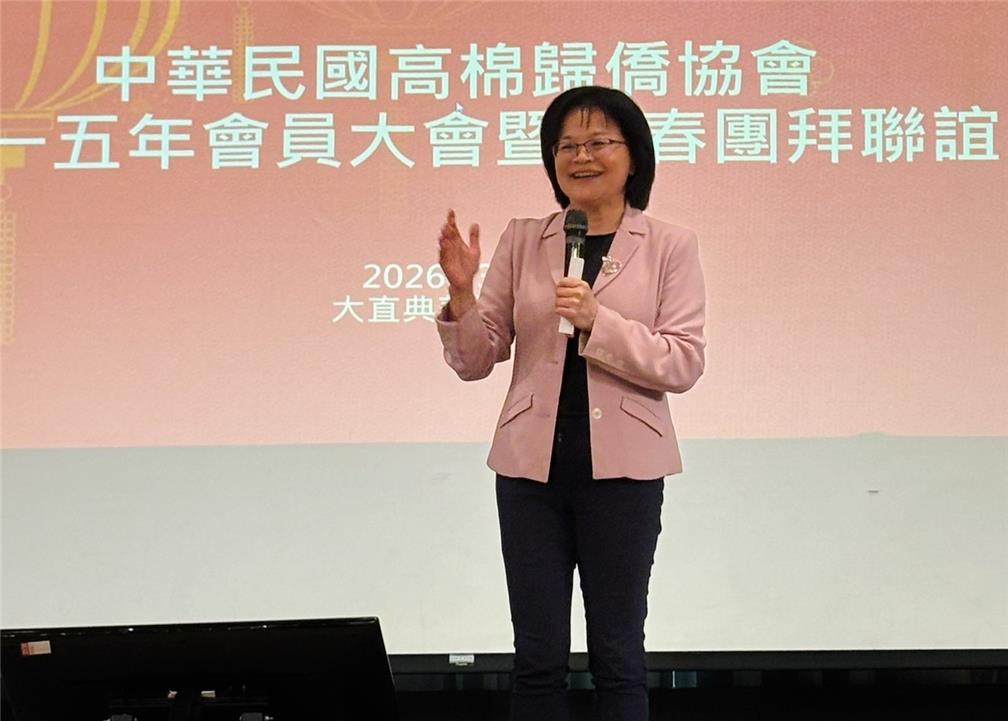中華民國緬甸歸僑協會於115年3月7日舉辦「第11屆第2次會員大會暨新春團拜」,僑務委員會李副委員長姸慧出席致詞,肯定及感謝緬甸歸僑協會長期對僑務工作的支持,並悉心關懷照顧僑生,是僑務工作最積極、最成功的社群典範。