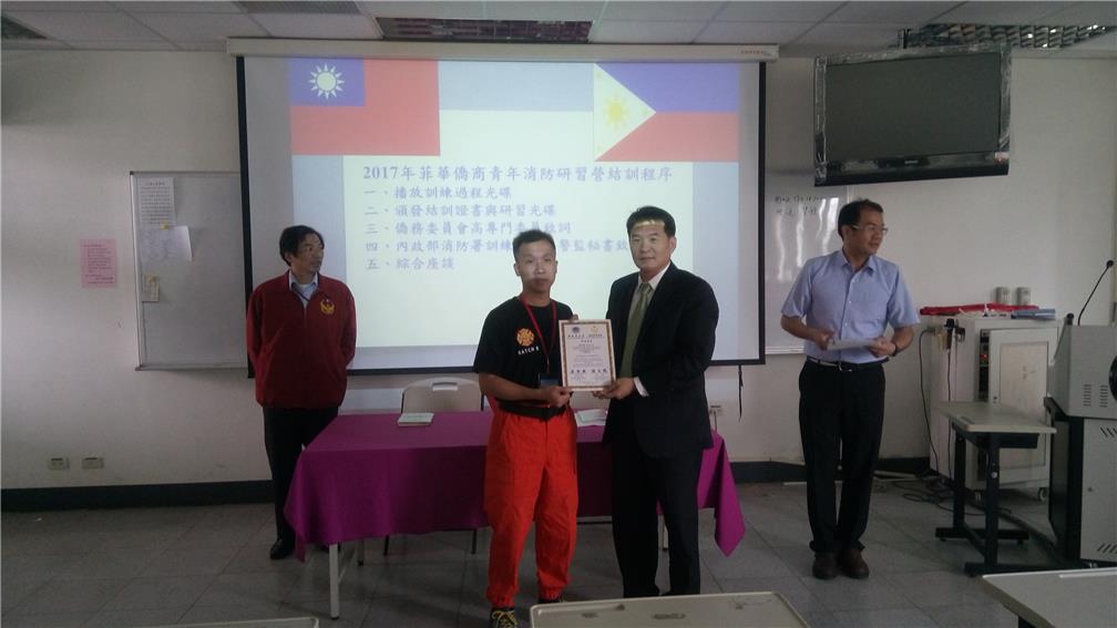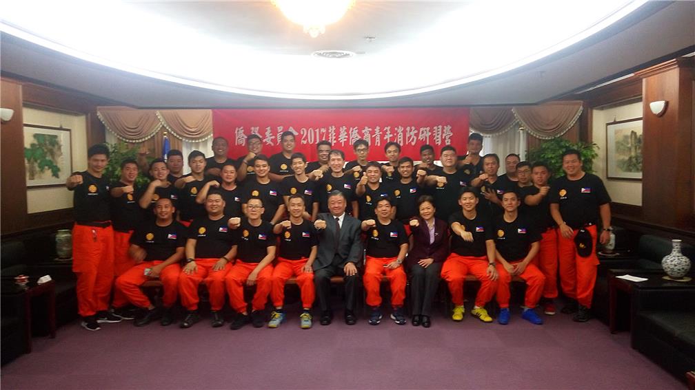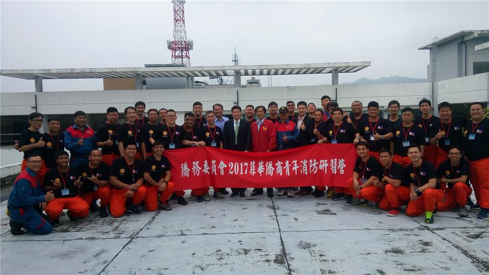 為結合政府部門資源,加強聯繫海外僑商青年,培育海外僑商青年投入社會服務工作,本會委請內政部消防署於2017年4月24日至29日舉辦「2017年菲華僑商青年消防研習營」,共有來自菲律賓32名華人志願消防隊及防火會之僑商青年志工來臺參與,在南投縣內政部消防署訓練中心實地操練火災搶救、車體破壞及人命救助等專業技能訓練,全體團員咸表獲益良多。