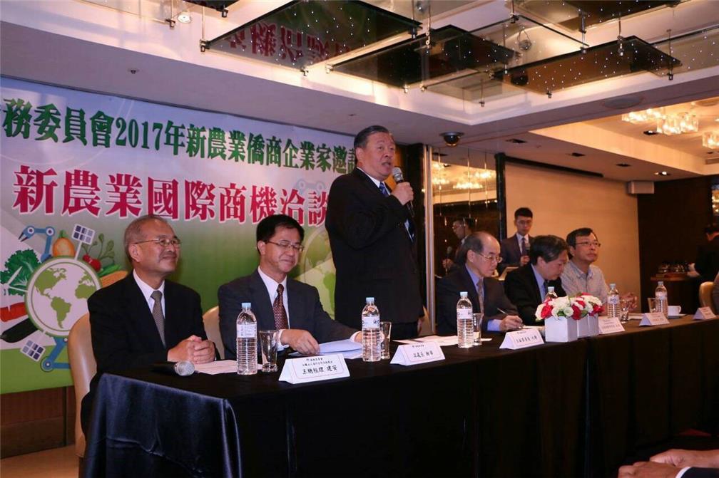 本會呂委員長主持「新農業國際商機洽談會」及「綜合座談會」,呂副委員長表示,僑委會提供區域鏈結的平臺,促成海內外經貿合作、人才交流、資源共享等各面向的合作,為海外僑臺商企業創造更優質的投資環境。行政院經貿談判辦公室高資深談判代表表示,2017年為新南向元年,為建立與各國更緊密關係及制度性的往來,政府在資源有限情形下推動以來,已獲民間熱烈反應,僑務委員會辦理此項非常有意議的活動,有助國內民間企業與海外僑商更瞭解彼此,探尋合作可能性,並發展更堅實的夥伴關係,對僑商與國內企業都是有幫助的。本邀訪團張團長政銘僑務諮詢委員表示,國內廠商擁有許多國外企業所需的技術和設備,肯定僑委會扮演穿針引線的角色,媒合海內外商機,希望海外僑臺商和僑委會建立緊密合作的鏈結,共創互惠互利的「新南向政策」。