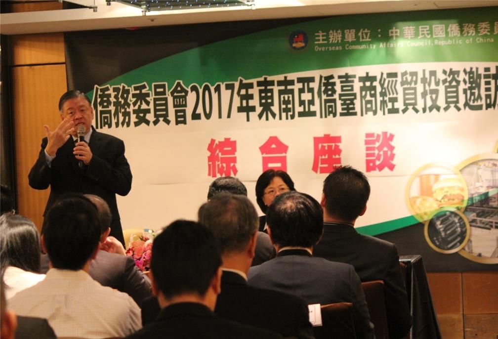 僑務委員會為落實政府新南向政策,於2017年10月30日至11月3日首度辦理「2017年僑務委員會東南亞僑臺商經貿投資邀訪團」,邀請印尼、越南、柬埔寨、泰國、菲律賓及緬甸等6國21位具投資意願東南亞僑臺商回臺參訪並交流商機,搭起媒合平臺,期能透過東南亞僑臺商與國內智慧機械、智慧物流及連鎖加盟產業業者合作,強化國內經貿投資動能,共創合作商機。