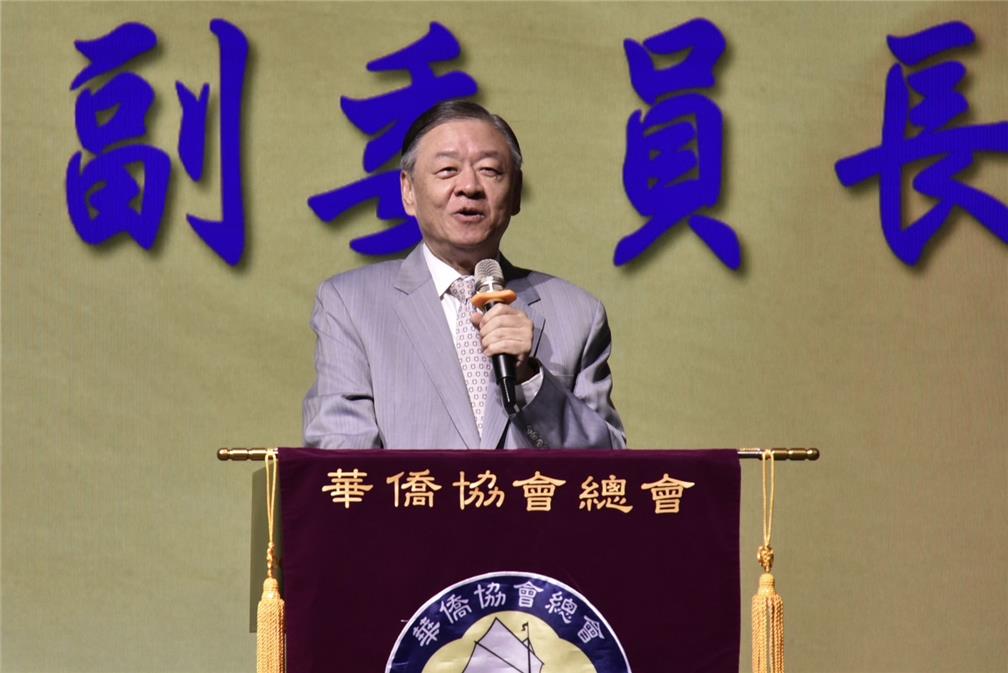 華僑協會總會舉辦「113年華僑節慶祝大會」,該總會林齊國理事長致詞。