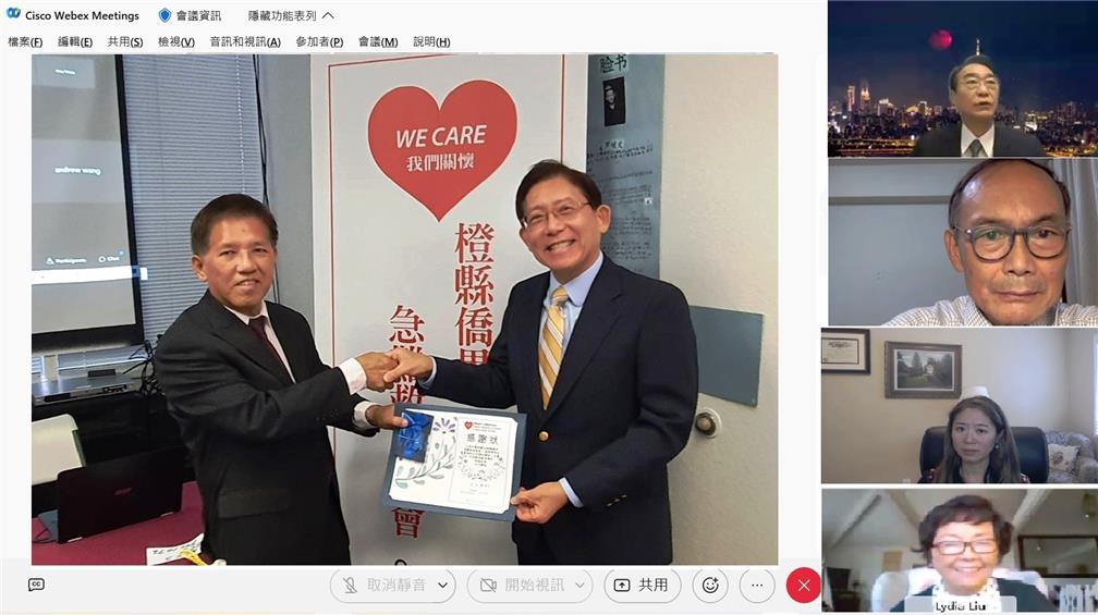 橙縣僑界急難救助協會副會長暨僑務委員張珮鑾、前會長暨僑務諮詢委員林翠雲、秘書長暨僑務顧問曾昭華、理事暨僑務顧問黃河芬、僑務促進委員徐小嫚及曲學蕃則遠距上線參加。