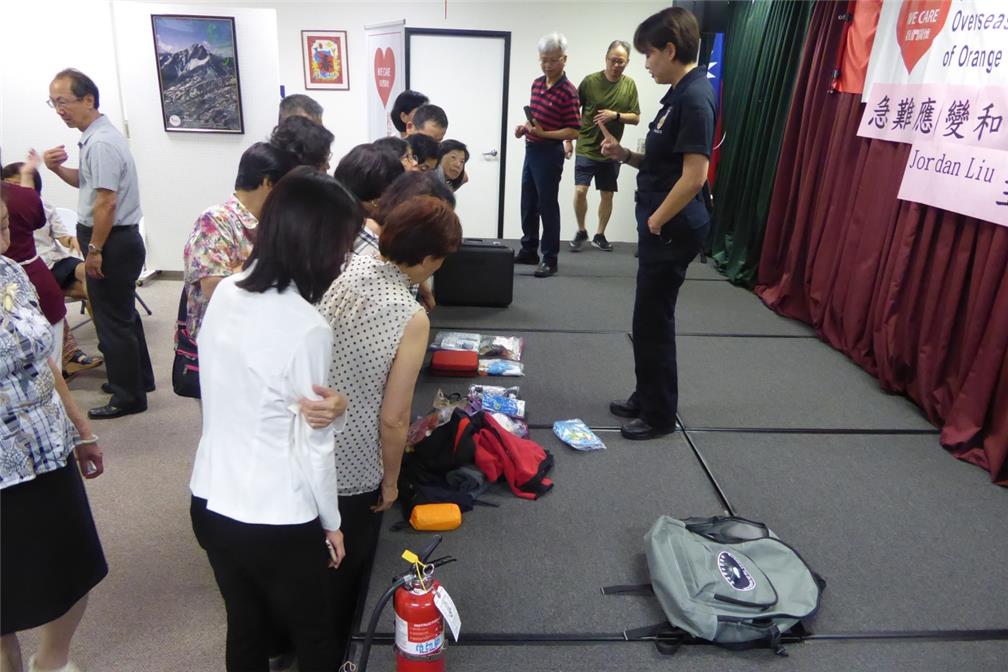 講座由爾灣市警察局華人社區專員蘇玲雍警佐擔任主講人,講授地震天災,以及槍擊、搶案等危及人身安全的預防觀念、應變要領。此場講座吸引近百位僑民前來汲取急難應變知識。橙縣文教服務中心主任蔣翼鵬致詞感謝協會致力服務僑民,於僑民遭遇緊急危難事件時,提供必要與及時之關懷與救助,並協助僑民強化急難應變能力,提高住行等面向的安全警覺。