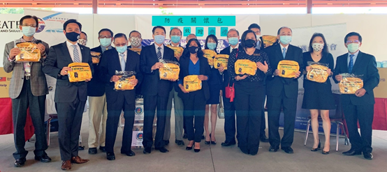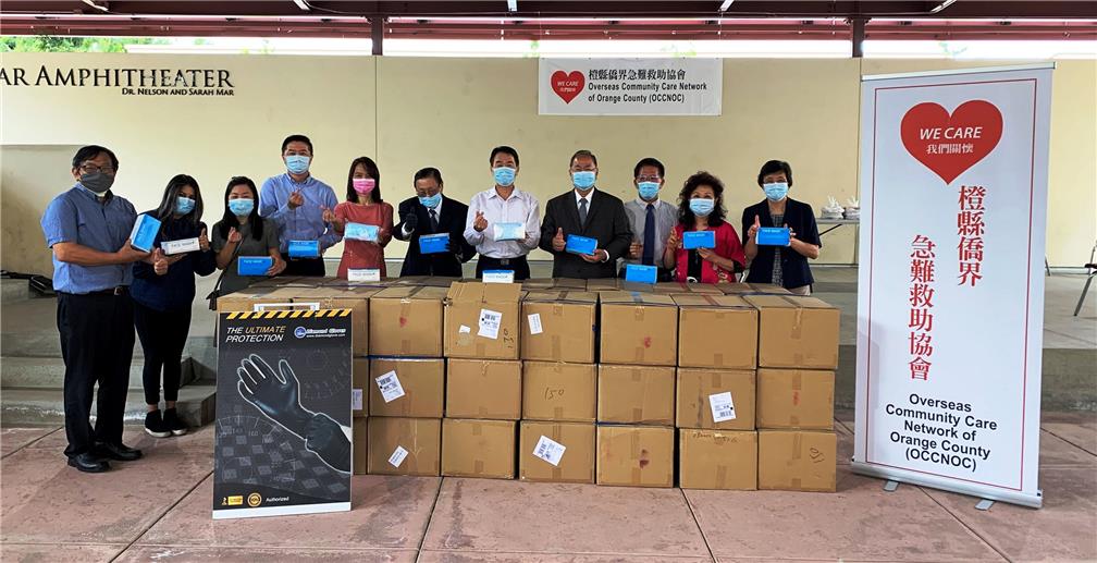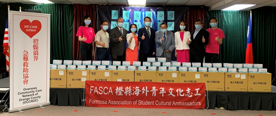 當天應邀出席醫療口罩捐贈儀的來賓,還包括協會秘書長暨僑務促進委員陳景星、協會理事暨僑務促進委員曾昭華,FASCA橙縣分會助教張仁鐠及高郁翔。