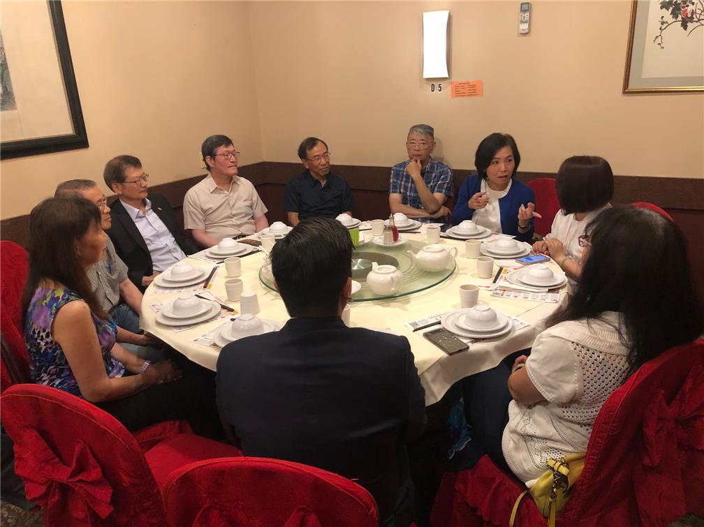 亞省僑界急難救助協會許會長平宗(中立)率領該會9名幹部於午宴歡迎劉處長立欣率僑務組轄訪