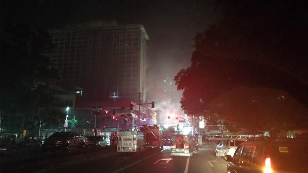 馬尼拉亭閣飯店大火,現場濃煙密布。