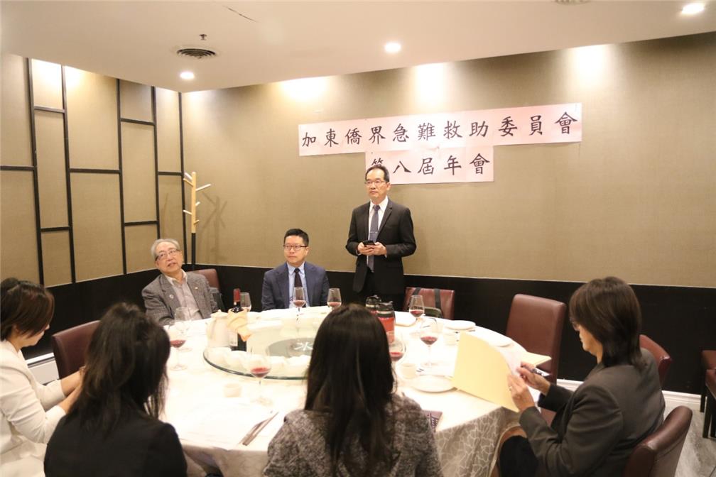 加東僑界急難救助委員會於113年9月7日在士嘉堡味香村餐廳舉行「第八屆年會暨志工講習」活動,多倫多辦事處副處長洪松暉及中心主任藍柏青應邀出席,另有辦事處副組長王慶貞、簡任秘書邱曉蘋、中心副主任徐沛宸、僑務委員黃煌裕、僑務諮詢委員金聲白、僑務顧問官俊憲、林麗娟、僑務促進委員吳偉敏、梁一念、該會秘書長謝俐玲、多倫多臺灣客家同鄉會徐紫彤會長、親善大使王尹詩等18人出席。