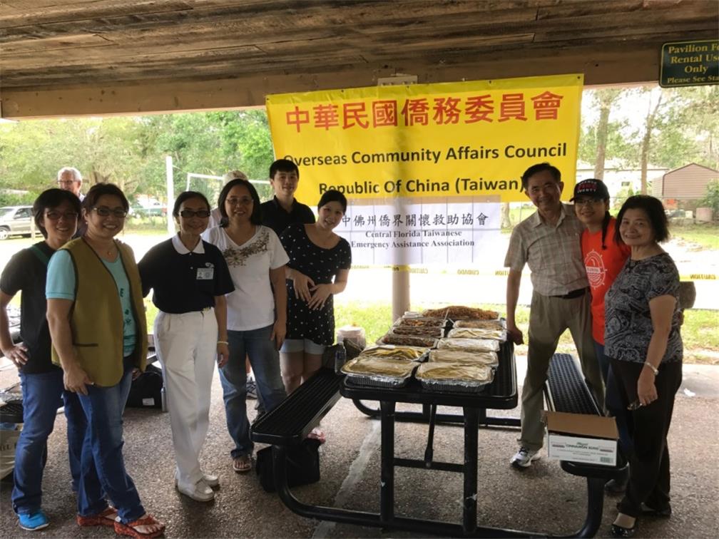 中佛州僑界關懷救助協會響應美國佛羅里達州奧蘭多市所在之橘郡郡議員Emily Bonilla 號召,並與慈濟奧蘭多聯絡處合作,於9月16日在奧蘭多布藍查公園(Blanchard Park),提供飲水、熱食與麵包予艾爾瑪颶風災民。艾爾瑪颶風造成中南佛州地區重大災情,許多地區電力等基礎設備仍未恢復,使得部分居民仍得留在避難所,生活大受影響;會長王成章僑務委員基於人道關懷,帶領協會全體動員提供多樣台灣美食、麵包及飲用水等,希望能撫慰災民心情積極面對後續的重建工作。活動召集人-郡議員Emily Bonilla 曾於今年年中拜訪台灣,對於中佛州僑界關懷救助協會與慈濟在本次活動以極短時間內準備豐盛道地美食與號召義工並有制度地協助發給食物印象深刻及感謝,還特別在僑務委員會及協會橫幅前接受電視台訪問。
