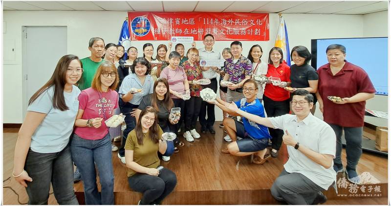 為增進海外教師對臺灣傳統文化的認識與教學應用,菲華文教服務中心於7月12日上午舉辦「僑務委員會民俗文化種子教師在地研習課程」,以「臺灣米食文化介紹與麻糬手作體驗」為主題,吸引大馬尼拉地區20位僑(華)校教師熱情參與,現場學習氣氛活潑,互動熱絡。