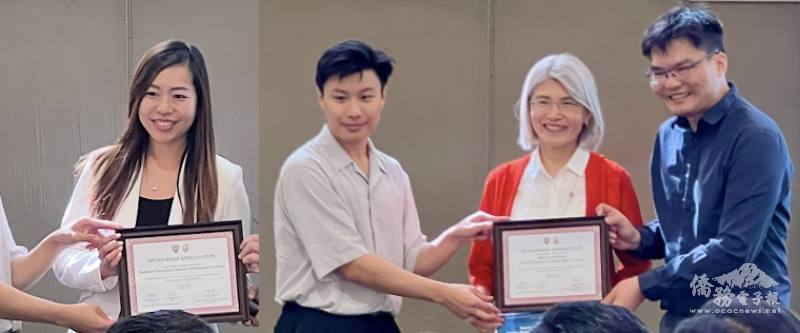 哈佛會長李典璋(右1),陳曦(右3)頒發感謝狀給辦事處教育組組長黃薳玉(右2),波克萊台灣商會會長陳奕如(左1)