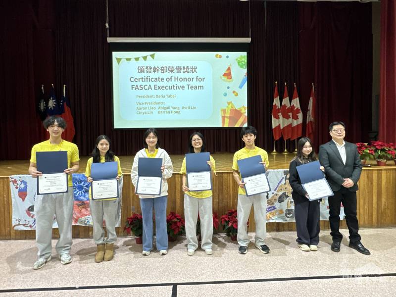 中心主任藍柏青感謝家長及貴賓長期支持,並特別提及約克郡教育局(YRDSB)理事主席Ron Lynn在處理香港火災事件期間仍到場支持。藍柏青帶領全場起立默哀一分鐘,為罹難者與家屬祈福,展現臺灣僑界的關懷。接續回顧FASCA在2025年於文化服務、僑界活動及公共參與的成果,並介紹2026年海外青年英語服務營,鼓勵學員回臺體驗教學與學習臺灣文化。