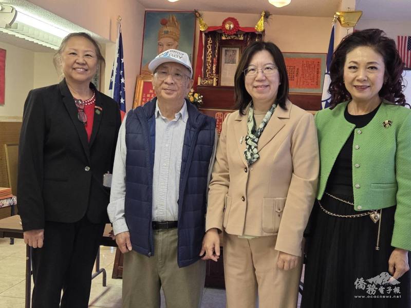 鍾佩珍在拜會黃氏宗親會會長黃健怡、匪匿鄧高密公所主席鄧豐沾和大鳳凰城僑聯總會兼余風采堂主席余美蓮時,雙方分享社團在地耕耘成果,就僑社歷史討論交換寶貴經驗。鍾佩珍也代表僑委會感謝各僑團長年對僑務工作的支持,表達政府對傳統僑社在促進文化傳承與社區連結上的肯定,盼大家繼續站在自由民主陣營,並為提升華人福祉共同努力。