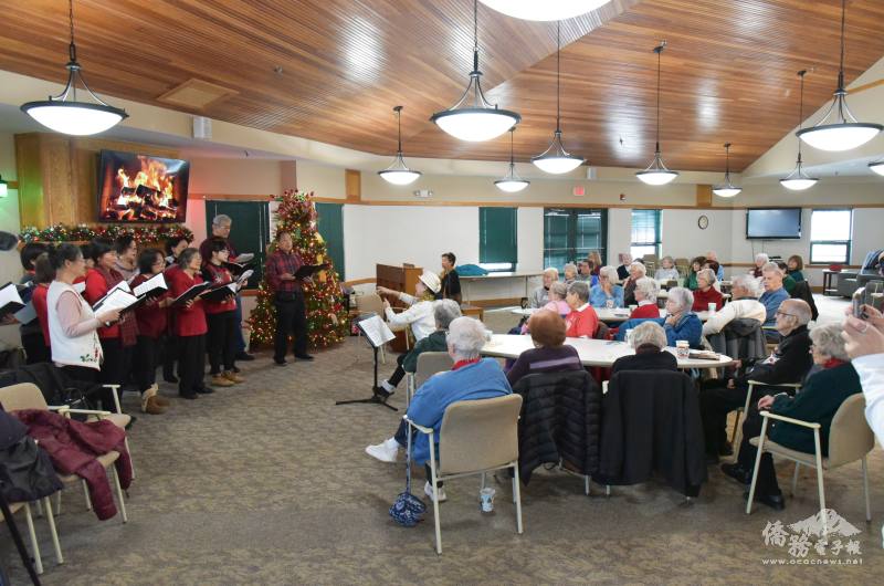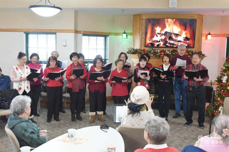 成立40餘年,享譽僑界的瑞柏合唱團12月8日前往位於瑞柏市的主流退休老人社區Tabor Hills表演聖誕新年歌曲,提前共度聖誕佳節,表達問候之意,並祝身心健康。當天,團長陳莉明帶領20位團員及其家屬,40餘位社區年長者出席,熱鬧洋溢。