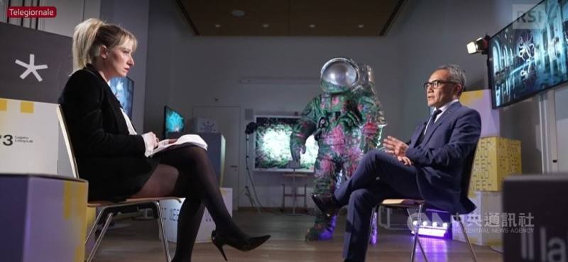 瑞士國家電視台義大利語台「燈塔」節目(Il Faro)專訪台灣駐瑞士代表王思為,記者圍繞台海現況與台灣發展提問。(新聞畫面截圖)