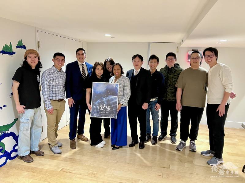 (左起)布朗大學臺灣學生會會長李沅臻、波士頓臺灣影展協會共會長蔡景全、東普洛威頓斯市市長辦公室主任André Herrera、羅德島臺灣同好會會長蕭如君、林秀卿、羅德島州副州長Sabina Matos、波士頓文教中心主任高家富、影展協會共會長林致中、Lobanton Andy Wang、Charuma張傅棠參加《造山者-世紀的賭注》放映會