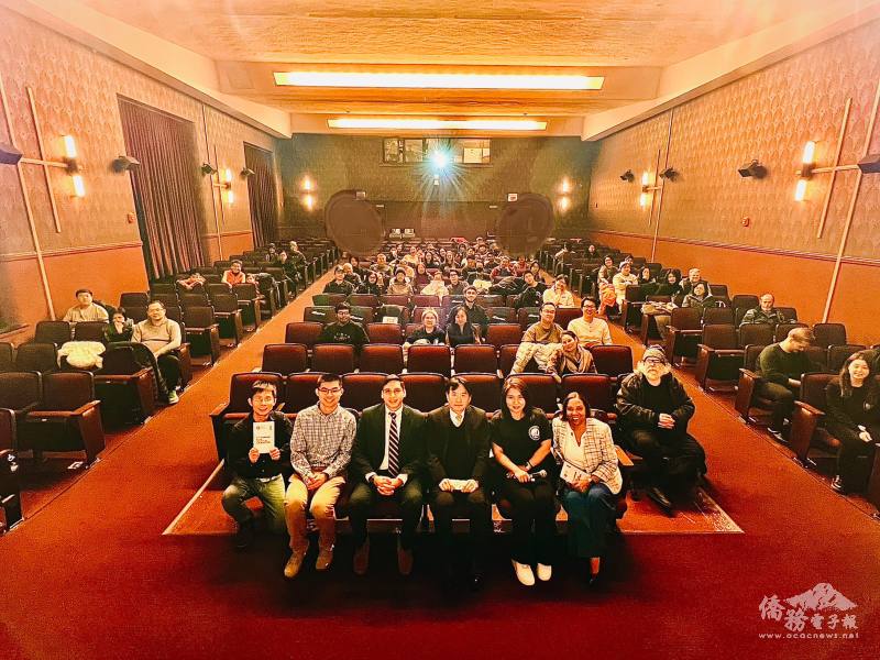(左起)新英格蘭地區臺灣同學聯合會會長李典璋、李沅臻、林致中、蕭如君、高家富、蔡景全、張傅棠、Andy Wang到場支持放映會