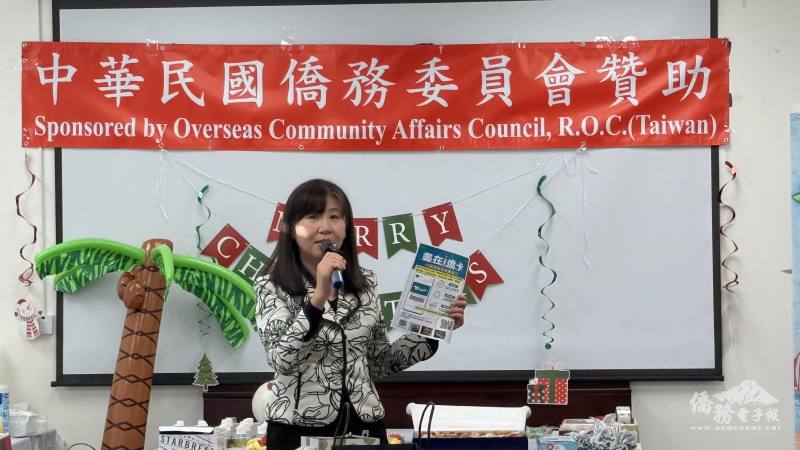金山灣區文教中心主任莊雅淑分享「i僑卡」的便利性,及2026 年僑臺商產業培訓研習班及參訪團