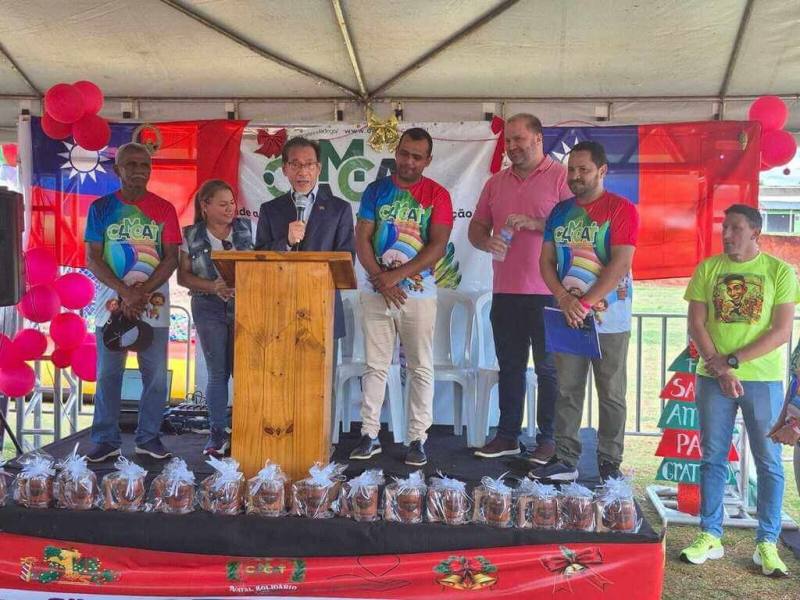 (中央社訊)駐巴西代表廖志賢偕副參事許秋煌,於20日前往距離首都巴西利亞約260公里的特林達市(Trindade)訪問,並出席特林達市弱勢援助中心(CAMCAT)的耶誕慈善活動。