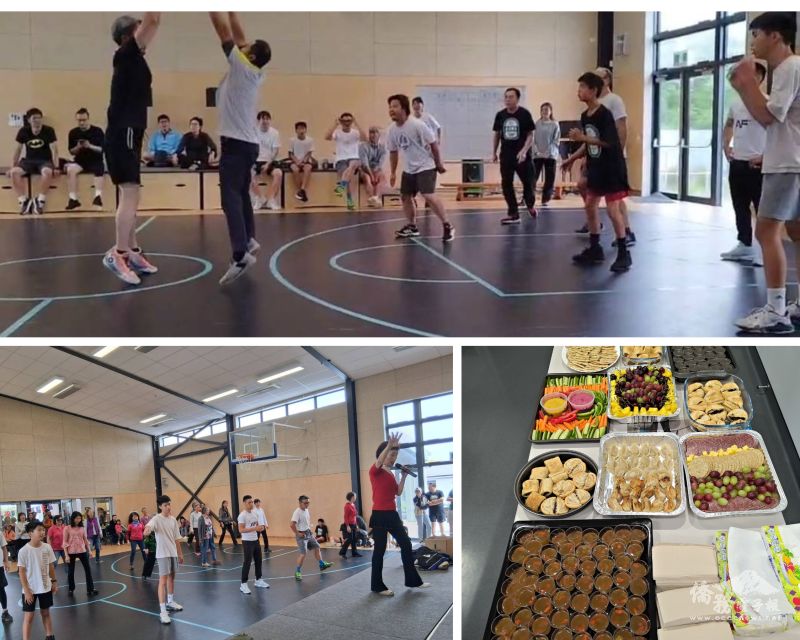 升旗典禮結束後,會長許凱舒與幾位鄉親準備豐盛的上午茶供大家享用,也在現場發放僑委會年曆與國旗等紀念小物。聯歡活動還包含排舞帶動以及籃球友誼賽。