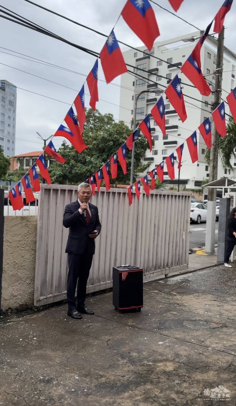典禮當日清晨天候不穩,然與會僑胞不畏風雨,提前抵達會館等候升旗。隨著典禮即將開始,雨勢逐漸趨緩,國旗在眾人注視下冉冉升起,全體肅立高唱國歌,歌聲在雨後清新的空氣中迴盪,凝聚旅多僑胞對國家的深厚情感與堅定支持。