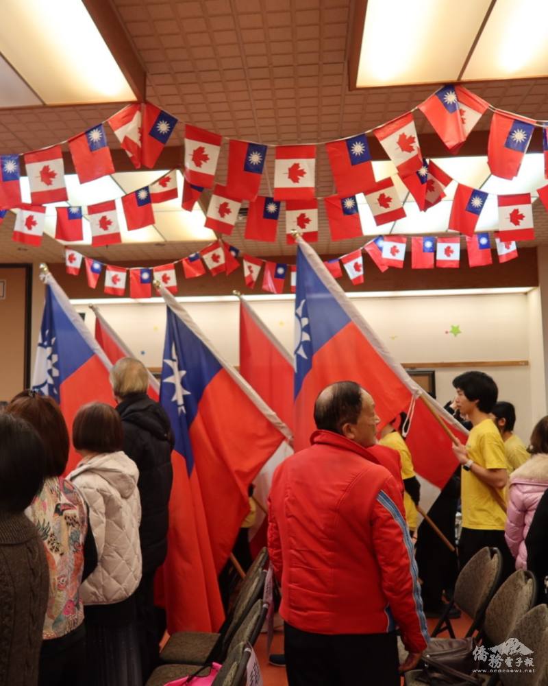 升旗典禮在海外青年文化大使(FASCA)溫哥華分會學員為護旗手,帶領國旗進場下展開,並由加拿大總支部青年會擔任升旗手。眾人高唱中華民國與加拿大兩國國歌後,青天白日滿地紅旗在國旗歌的伴隨下冉冉升起飄揚,以青春活力的方式開啟新的一年。