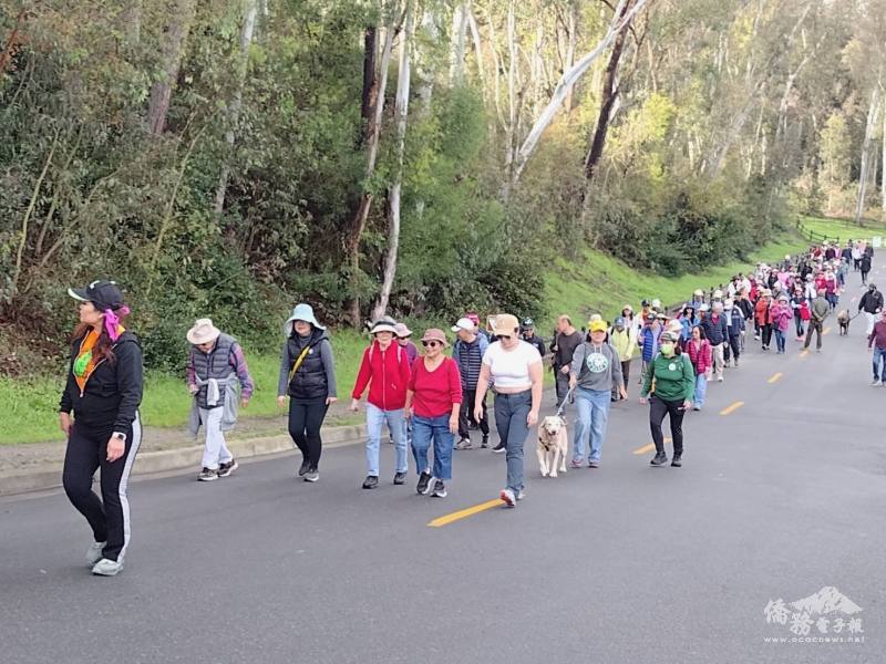 今年元旦健行由柑縣臺灣同鄉會理事黃而明僑務促進委員與張欣珠共同籌劃,當天由黃而明帶隊,大家在風和日麗的天氣下,沿著平坦的健行步道邊走邊聊,也有鄉親帶著毛小孩一起健身。