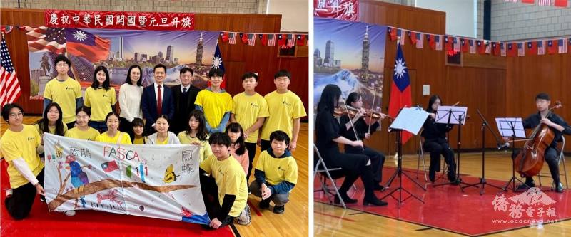 大會也安排多所僑校學生進行表演,其中麻州中部學校以室內四重奏的方式表演〈 臺北的天空〉、〈 月亮代表我的心〉、〈 蝸牛〉。勒星頓中文學校的學生們也輪番上陣高歌,唱出〈 臺灣的心跳聲〉、〈 我的未來不是夢〉、〈 心的方向〉等多首歌曲。海外青年文化大使波士頓分會的學員們也在動感的音樂中表演〈完美世界〉團體舞蹈,讓大家在跨入新年的第一天,充滿青春與希望的活力。