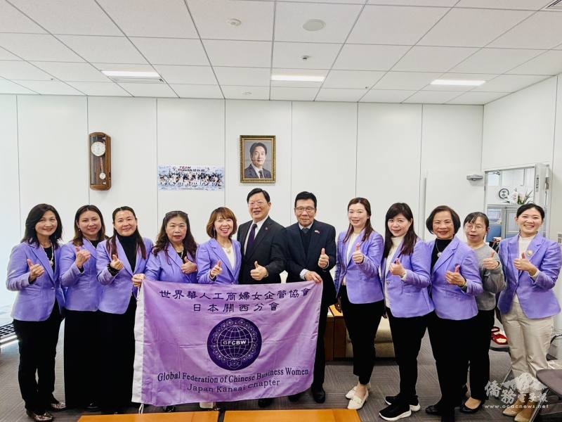 世界華人工商婦女企管協會日本關西分會會長中西美姬於1月6日率領第五屆幹部團隊,前往駐大阪辦事處進行新春拜會,由處長洪英傑親自接見,僑務秘書黃麗婷陪同。雙方就僑團世代傳承、年度活動規劃及未來合作方向進行意見交流,現場氣氛熱絡融洽。