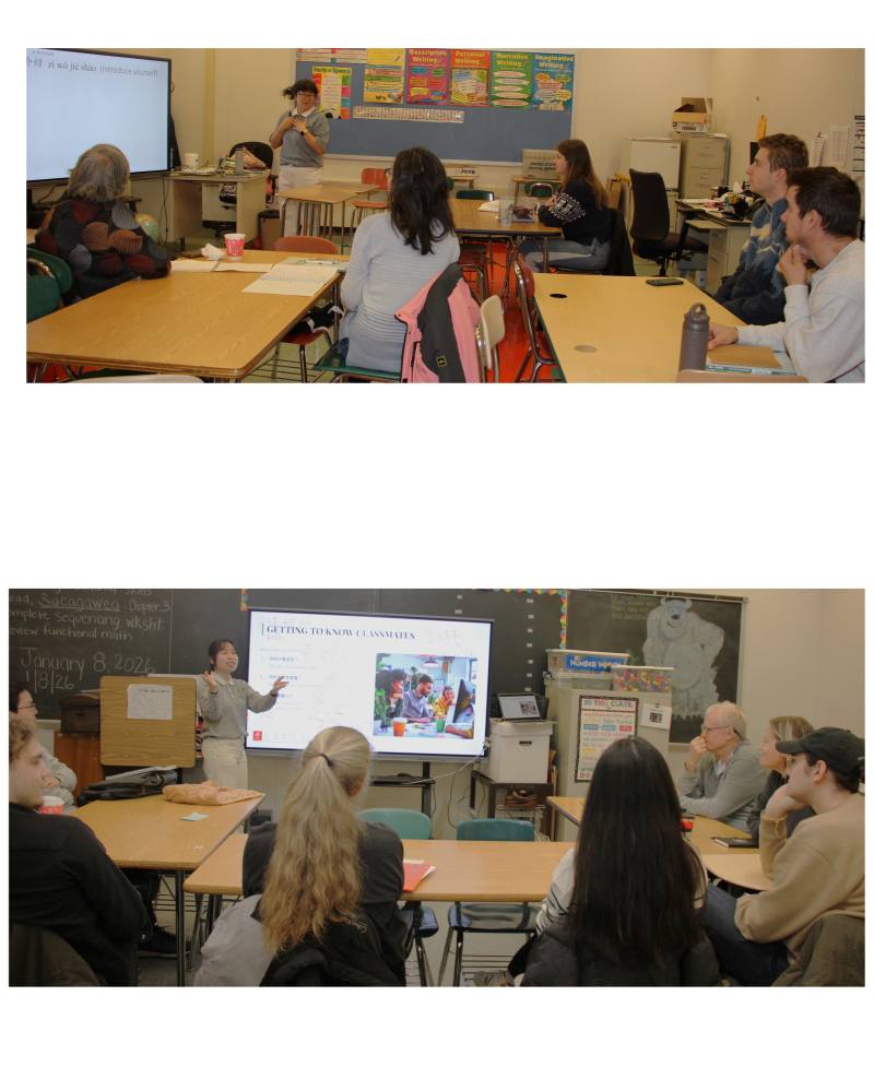 鄭依婷表示,依學員的程度共分初級1、初級2、中級1及中級2等4個班級,由她與另3位老師周韋辰、許千喬及黃婷琳負責教導,並進一步介紹每週的上課節數及時間。