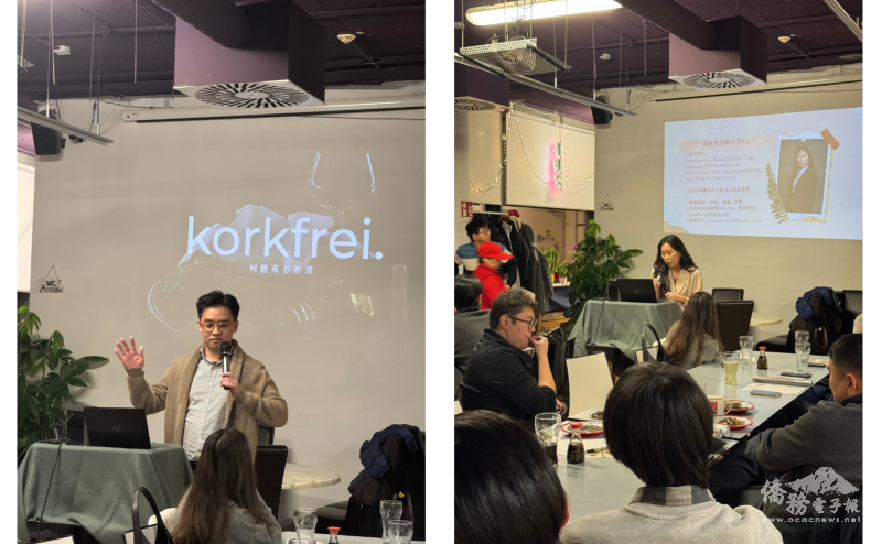 會員薛旭村(左圖)分享創立茶店品牌、開發茶酒產品的創業經歷;副會長何家伶(右圖)分享在奧地利職涯職場的打拚歷程