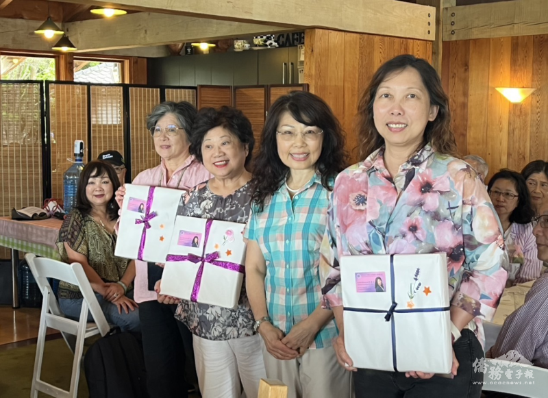 吳素芬(右二)致贈活動贊助者感謝禮,