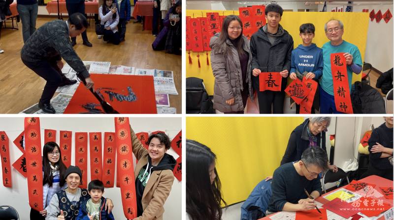 高家富鼓勵現場小朋友體會傳書法的精髓,並代表僑委會委員長徐佳青向大家致意,預祝新年馬到成功。