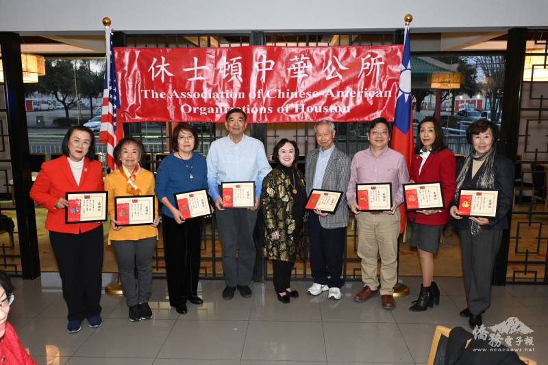 休士頓中華公所1月17日舉行第61屆年會,並進行共同主席交接典禮,在駐休士頓辦事處處長蕭伊芳主持下,榮光聯誼會的左大為、李館國威堂的Zeal Wesley接下2025會務。