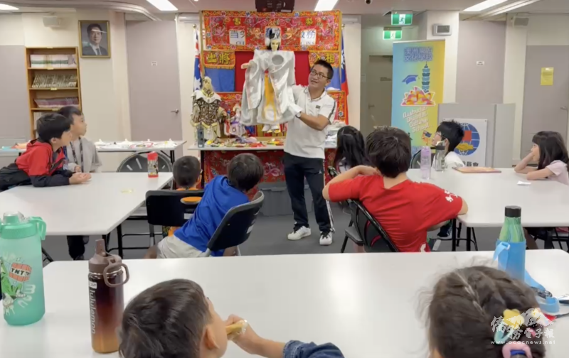 老師廖洺緯進行台灣傳統布袋戲教學