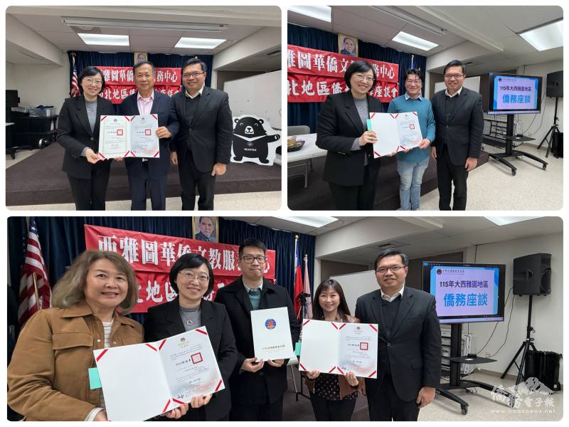 為強化僑界攜手合作與傳承臺灣文化的動能,西雅圖文教中心於1月22日邀請大西雅圖地區僑務委員温在興、僑務榮譽職人員及各僑團代表舉行「2026年僑務座談」,會中聚焦推廣臺灣華語文學習、台灣傳統週及2026年各社團年度活動規劃,期望為大西雅圖地區注入更多青年活力。另外駐西雅圖辦事處處長林美呈也在活動中代表僑務委員會委員長徐佳青頒發多項感謝狀,來肯定僑領們對僑界的卓越貢獻。