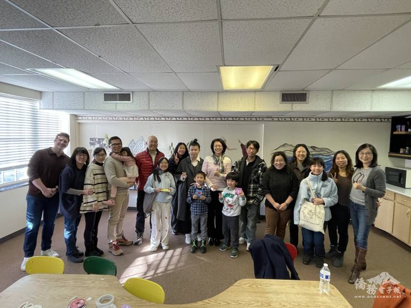 蕭伊芳及文教中心主任王盈蓉與奧城華校師生家長合影