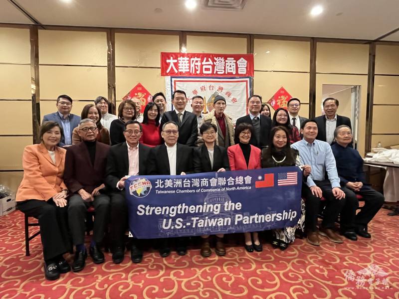 大華府臺灣商會2月7日在馬州舉辦新年慶祝活動,出席貴賓包括駐美代表處副代表楊懿珊公使、領務組組長林俊廷、文教中心主任黃正杰、副主任李佳蓉、經濟組副參事吳俊逸、秘書石睛晴、北美臺商會總會長白越珠伉儷等共同賀歲。