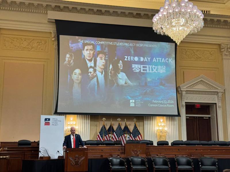 10日的國會放映由華府智庫「Special Competitive Studies Project(SCSP)」籌劃主辦。該組織由前谷歌執行長施密特創立,長期關注人工智慧與新興科技對國家安全與經濟競爭力的影響。《零日攻擊》此次亦於SCSP辦公室舉辦對談交流,吸引多位政策圈官員與學者參與,引起華府兩黨國安與對台友好陣營的高度關注。