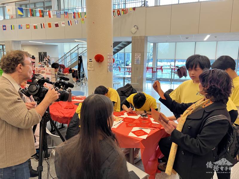 學員們書寫春聯發送,吸引許多小朋友嘗試