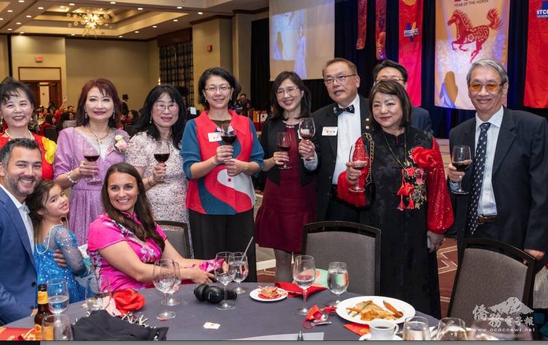 北德州哥林郡台灣商會(GCC-TCC)2月14日在理察遜市舉行馬年新春晚會,理察遜市長 Amir Omar、駐休士頓辦事處處長蕭伊芳(Yvonne Hsiao)、州眾議員陳筱玲、布蘭諾市長 John Muns、文教中心主任王盈蓉與北美洲台商總會總會長姚宏智等人應邀出席。