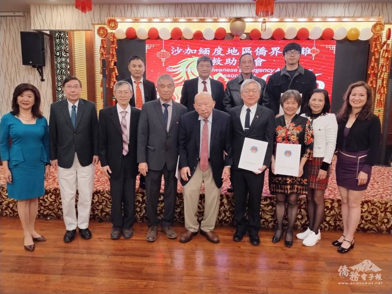 鄧敏宏校長(左)與僑務秘書杜戎珄向當地民眾拜年