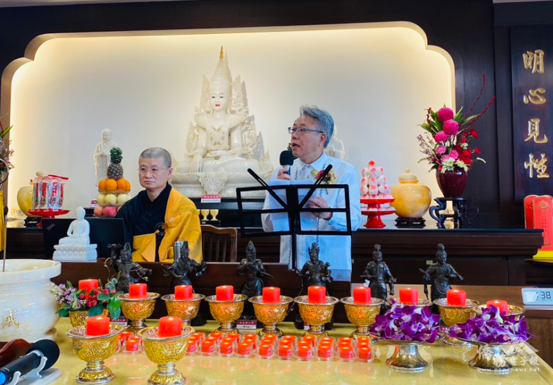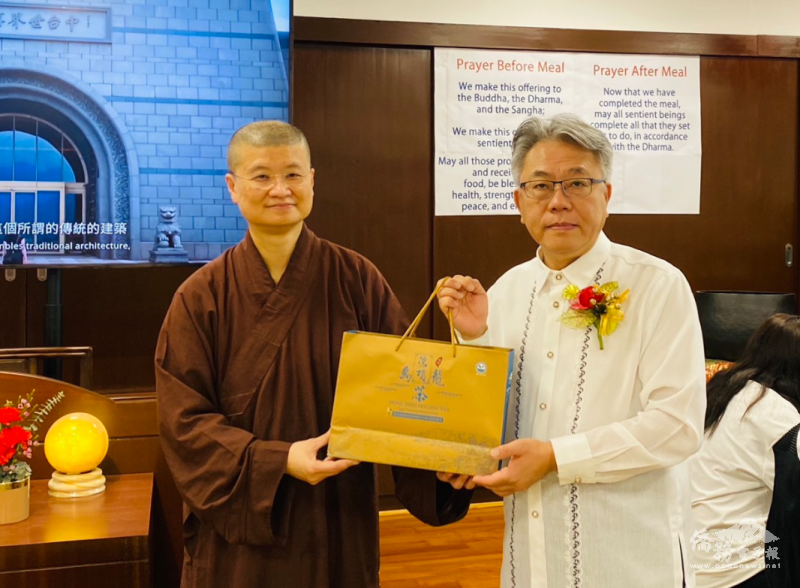 楊登仕致詞表示,海天禪寺自2002年於馬尼拉聖胡安市(San Juan)設立以來,一直是當地信眾修行與心靈成長的重要道場,不僅弘揚正信佛法,也為僑界提供安定人心的精神依靠。他肯定菲律賓僑社在促進臺菲友誼方面所扮演的重要角色,並指出宗教與文化交流是深化雙邊情誼的重要力量,透過多元活動為菲律賓社會注入祥和與正向能量。