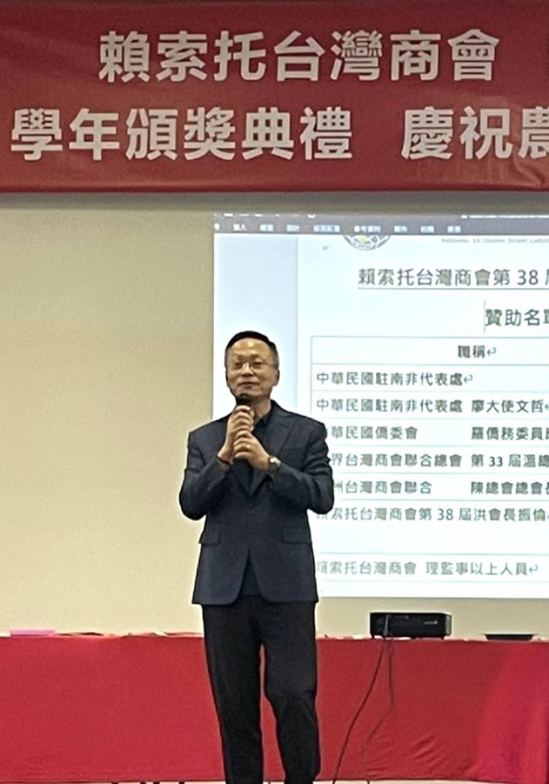 2月18日上午,麻坡留臺同學會舉辦新春團拜暨會員子女獎勵金頒發典禮。會長黃永財致詞勉勵學生精進學業,顧問林明才、林真福、張文賢到場共襄盛舉。學生依序上台領獎,親友報以掌聲;會場春聯映襯,年節氛圍濃厚。