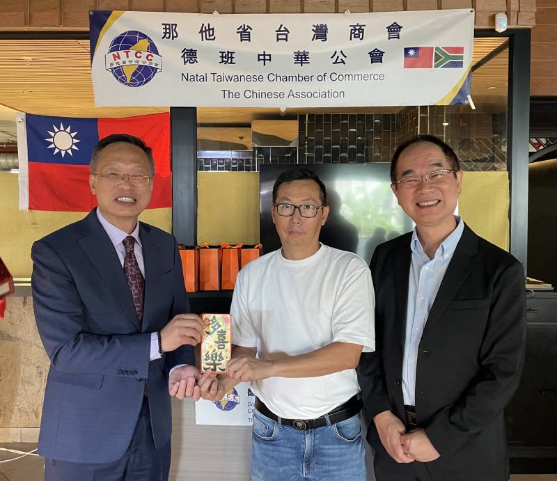 廖文哲伉儷一行續於2月15日前往德班出席那他省台灣商會暨德班中華公會舉辦的春節聯歡活動並提供行動領務服務,吸引當地逾200位僑胞到場參與。僑胞孩童身著傳統服飾,洋溢濃厚年節氛圍,現場播放僑務委員會委員長徐佳青春節賀歲影片,並安排摸彩等活動,場面歡欣溫馨。出席貴賓包括僑務委員崔毓芬、德班商會會長黃仁明、僑務諮詢委員林資益、薛燕福及臺灣中華文教中心德班中文學校校長陳金衣等僑界人士。