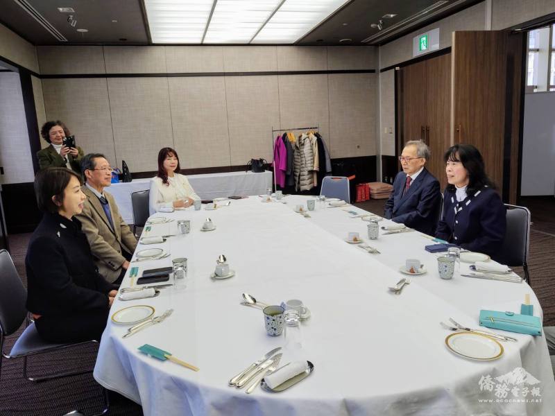 李姸慧(左一)與石貴容(右一)等人於席間就名古屋地區僑情交換意見