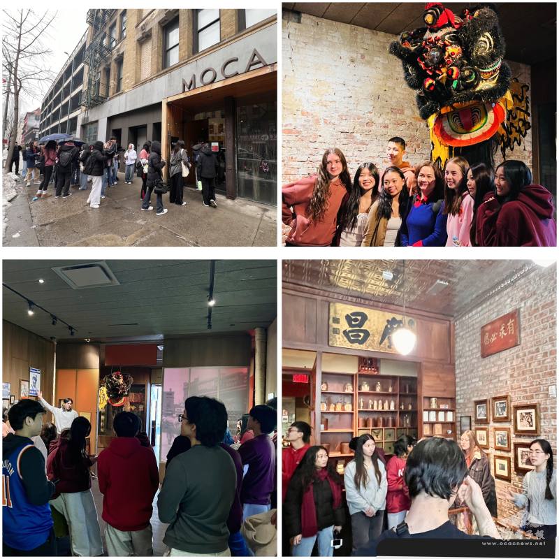 華強山地區高中(Watchung Hills Regional High School) 華語文課師生共50人,2月18日參訪紐約市中國城的美國華人博物館(The Museum of Chinese in America (MOCA)。講解員導覽參觀「千里之行:歷華人旅程,寫美國歷史(With a Single Step)」特展,以及多項華人移民美國的主題展。帶隊華語文老師、大紐約主流教師協會會長歐瑪麗同時規劃學生體驗紙蛋糕早餐、飲茶文化、以及中國城的觀光生態,強調「將課本變成生活的學習經驗、讓語言走進人群,才會真正活起來。」