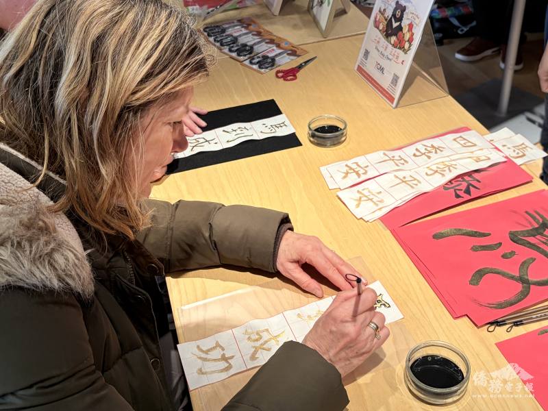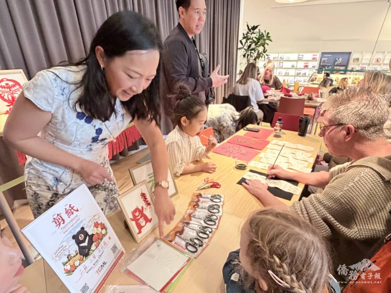 此外,為了讓當地民眾實地感受中華文化,攤位設計多項體驗活動。書法區提供志工親寫的「馬到成功」、「四季平安」等字帖,供民眾描紅,更設計創意「馬」字帶領當地人認識中華文字藝術。剪紙區有 TCML 教師設計的「吉利台灣黑熊」和結合春字和鬱金香的「鬱金春」創意剪紙,深受民眾喜愛。現場還有燈謎互動,由志工引導民眾念出漢語謎題、解釋含義並猜謎,用多元方式感受華人文化美好。